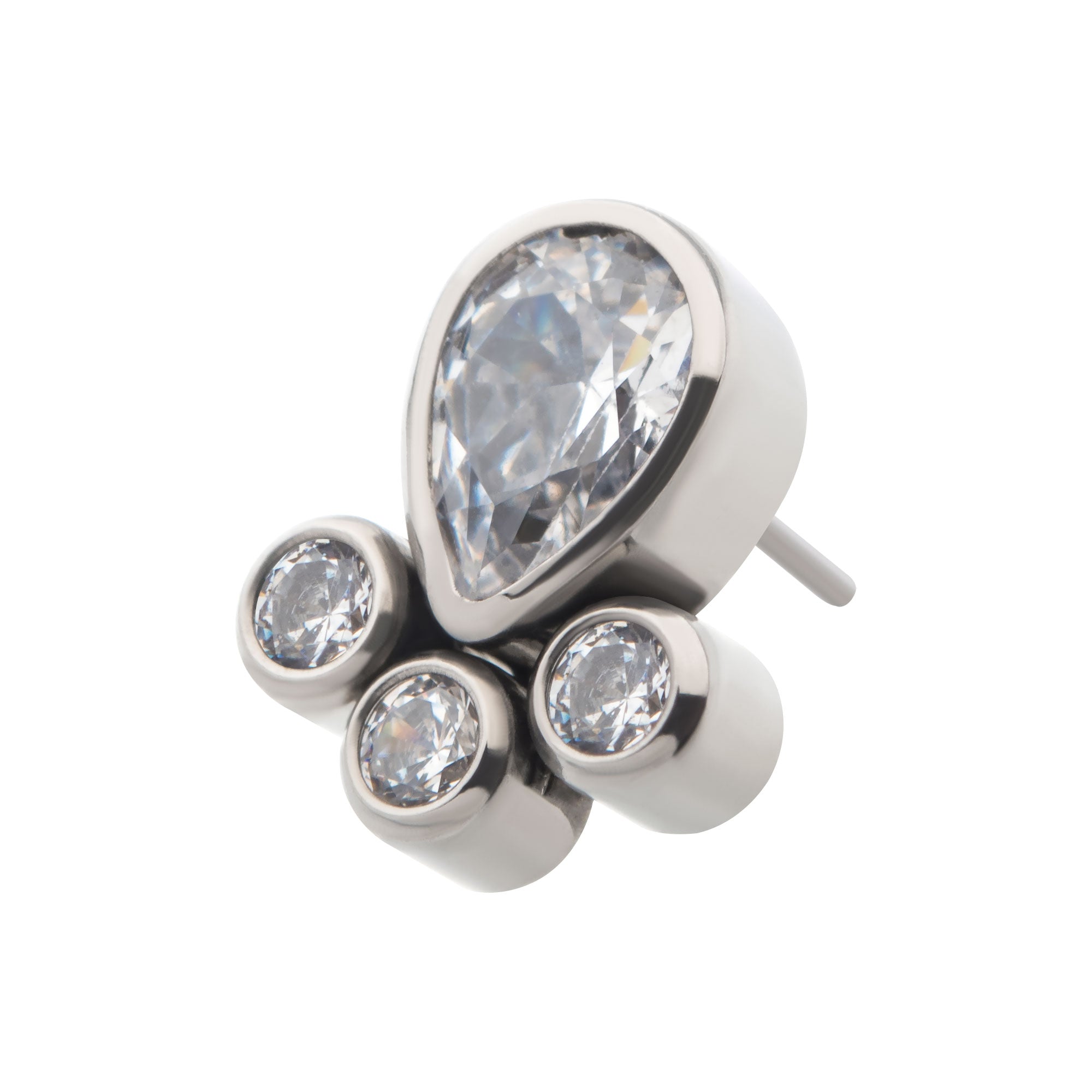 Titanium Threadless Clustered Teardrop & Round CZ Top