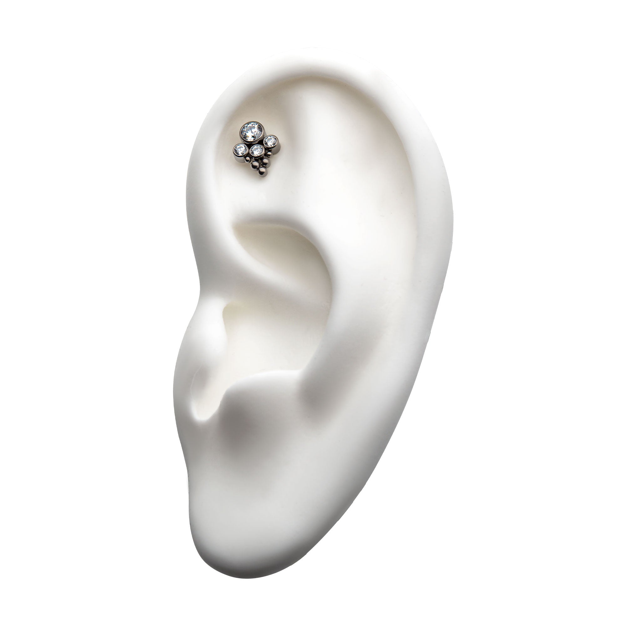 Titanium Threadless CZ Beaded Cluster Top Clear