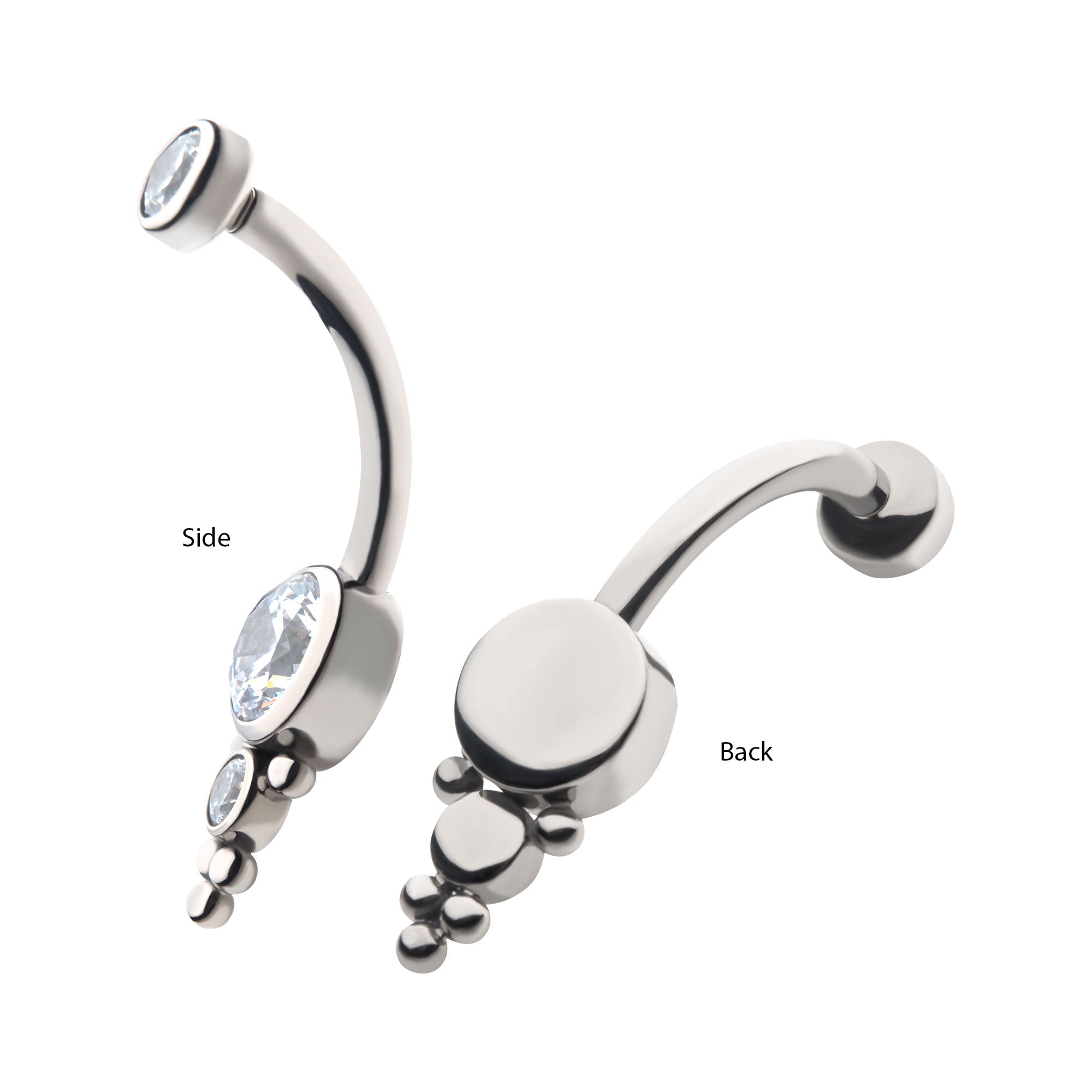 Titanium Internally Threaded with Tri Bead Bezel Set CZ Terraced Cluster Navel Curve