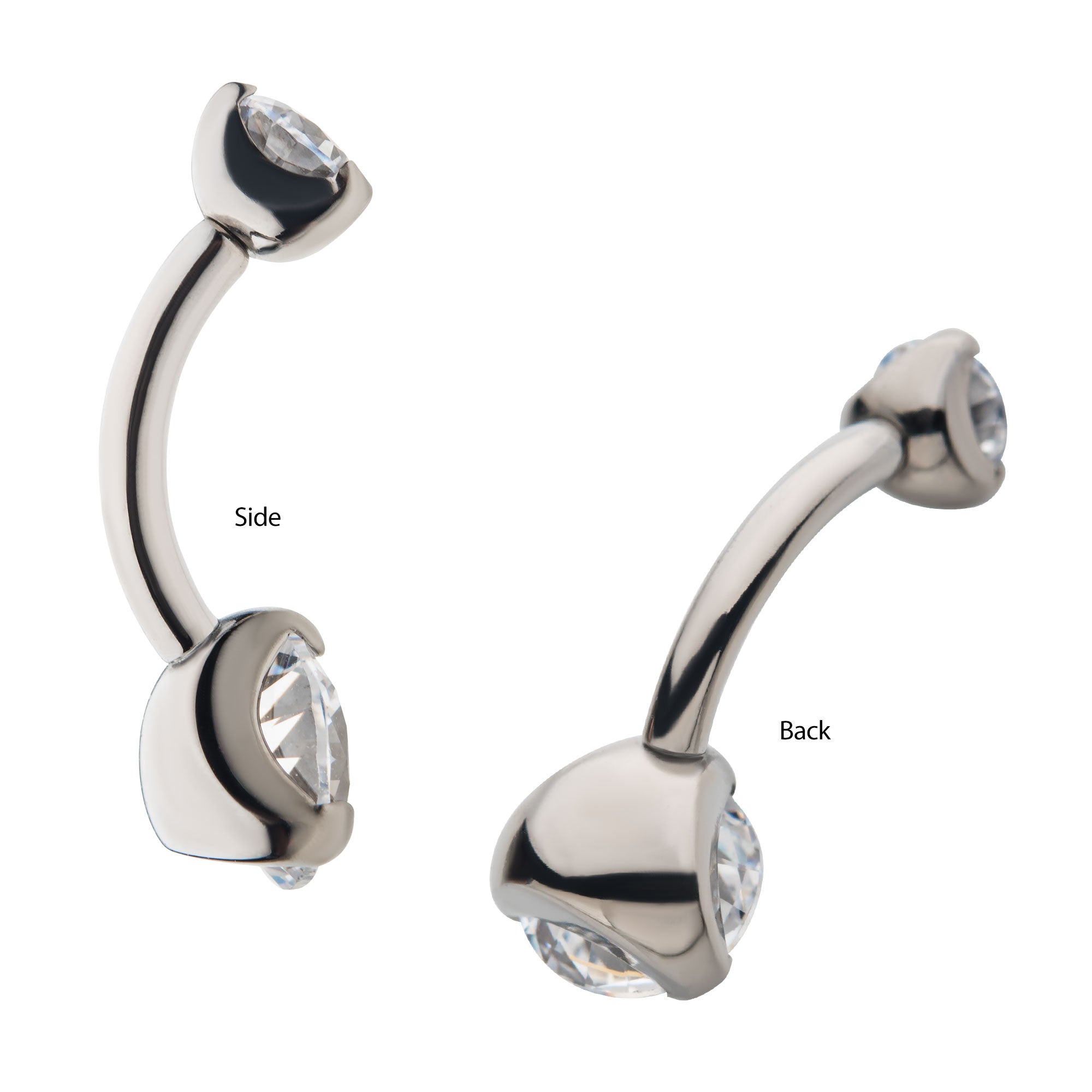 Titanium Internally Threaded with Bezel Set Double CZ Smooth Rounded Back Navel Curves