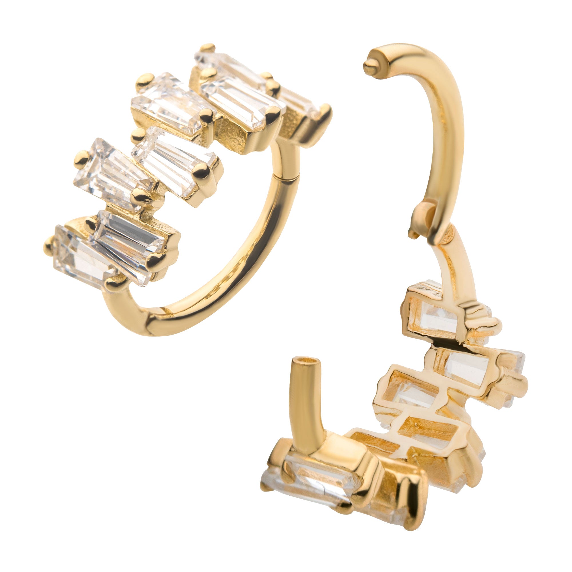 Known as the classic cartilage piercing, helix piercings are as addictive as they are attractive! How you present your helix piercings will depend on both your mood and the occasion, but our line of solid 14k gold & titanium sophisticated studs and high key hoops will always match what you’ve got going on.