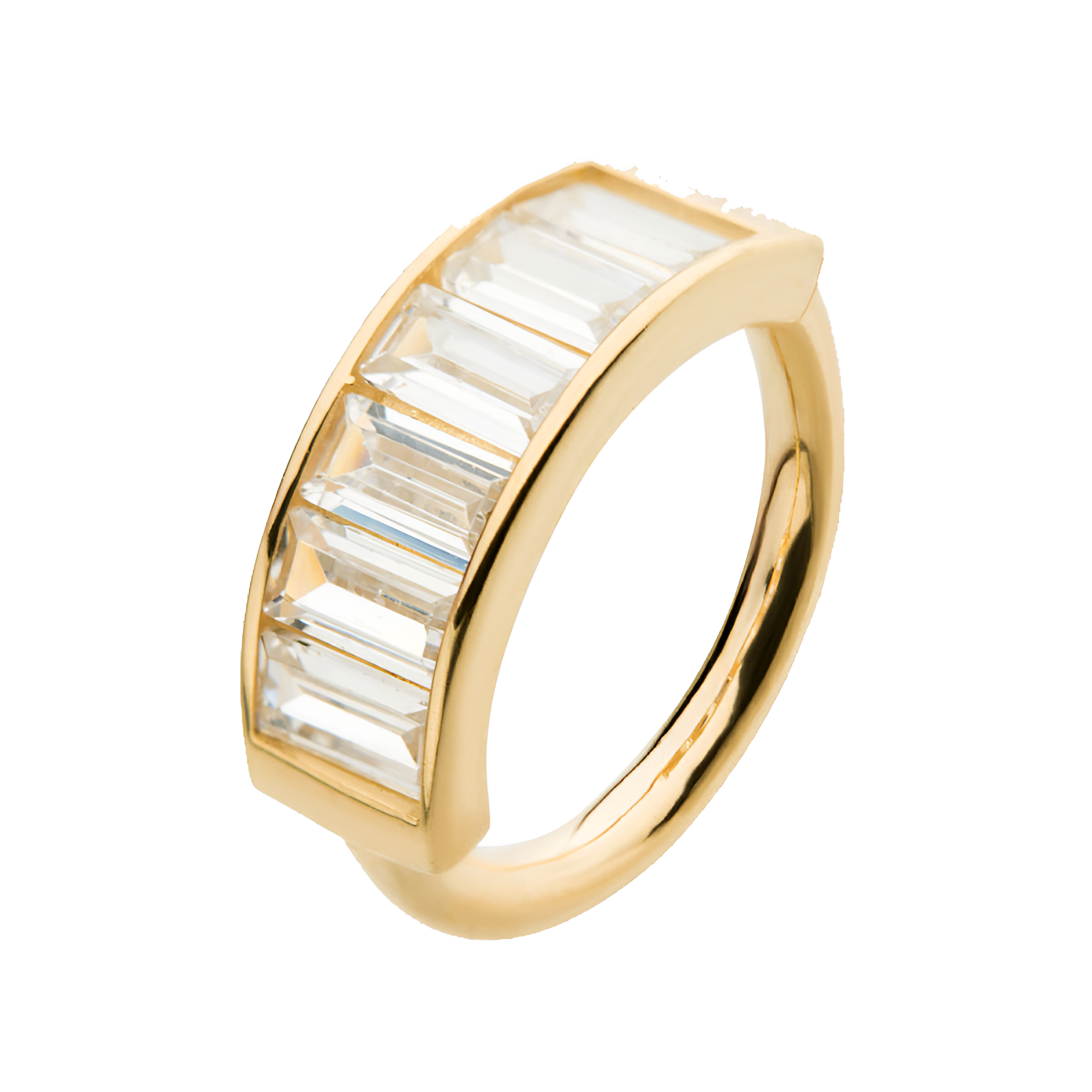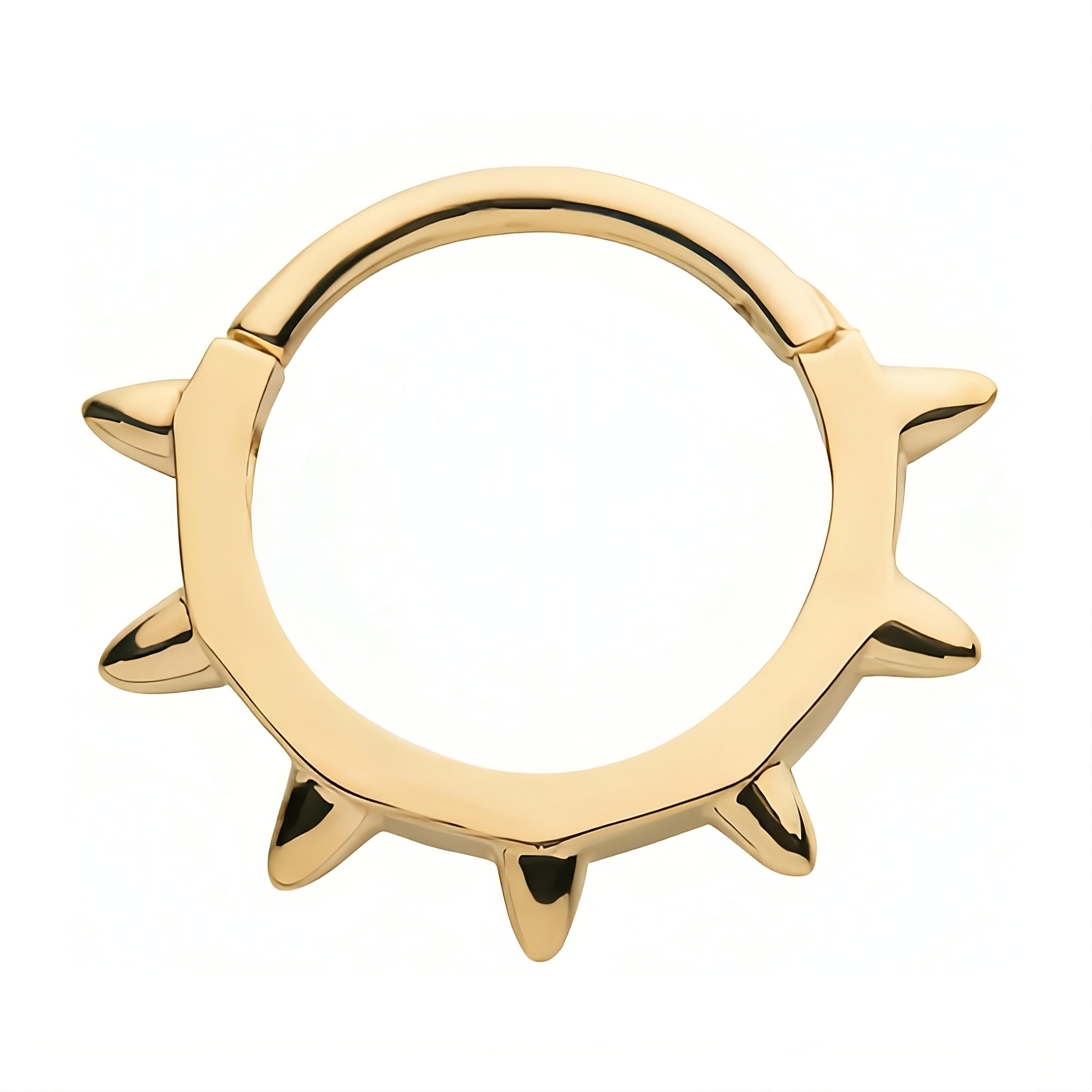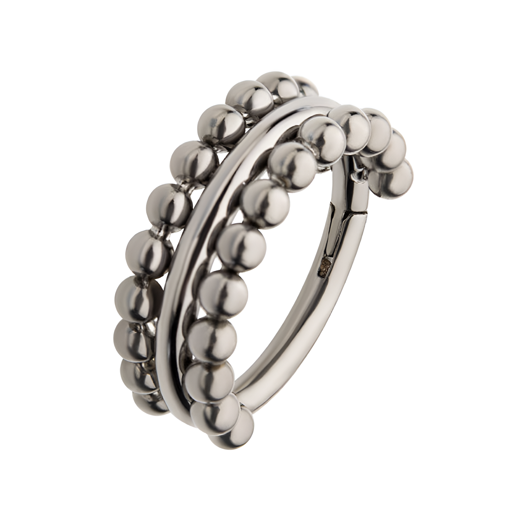 Clickers and hinged segment hoops have become the forerunners of body jewelry in the last decade, and it’s easy to see why. Their simple removal makes them ideal for the end of a long night out or a lazy day in, and they provide new looks that were previously unheard of. Check out our selection of solid 14k gold & titanium hinged rings for a clean look that cements your flair.