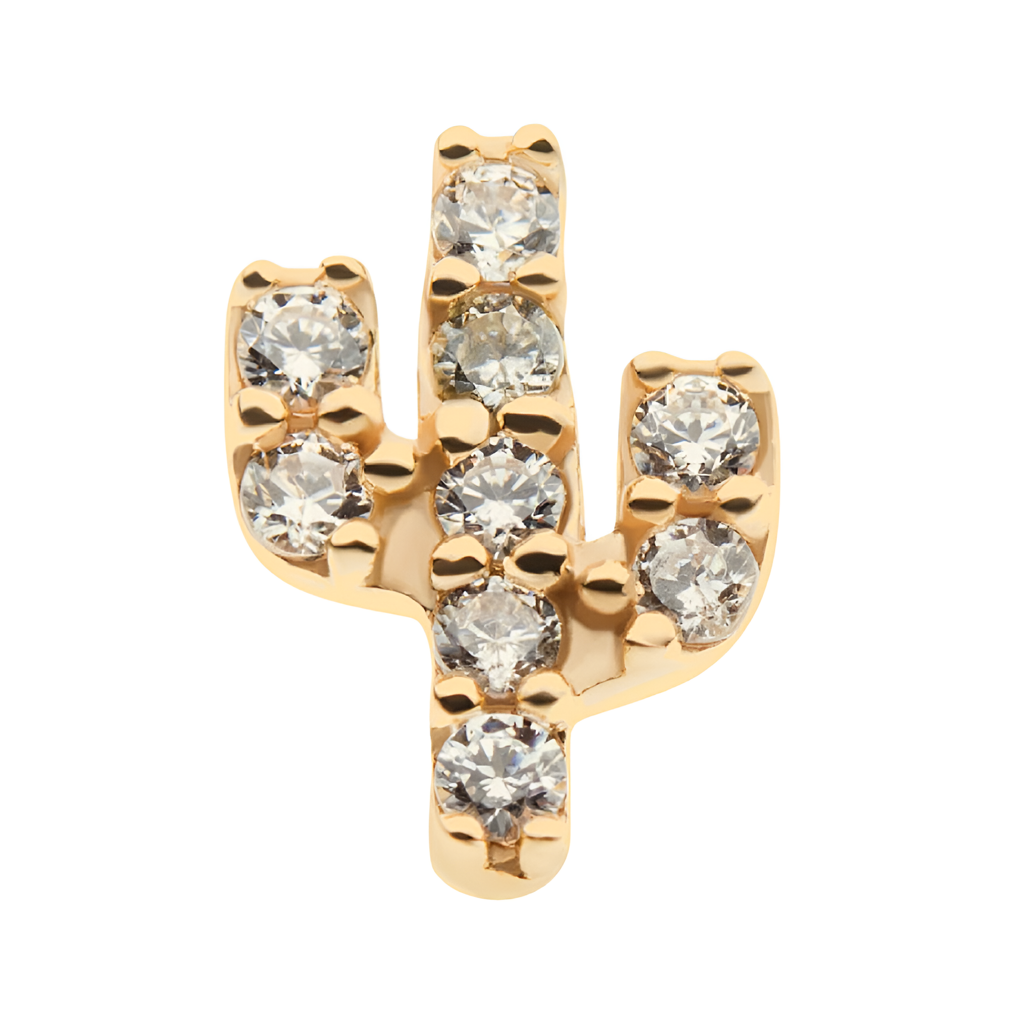 14kt Yellow Gold Threadless Round Clear CZ Cactus Top