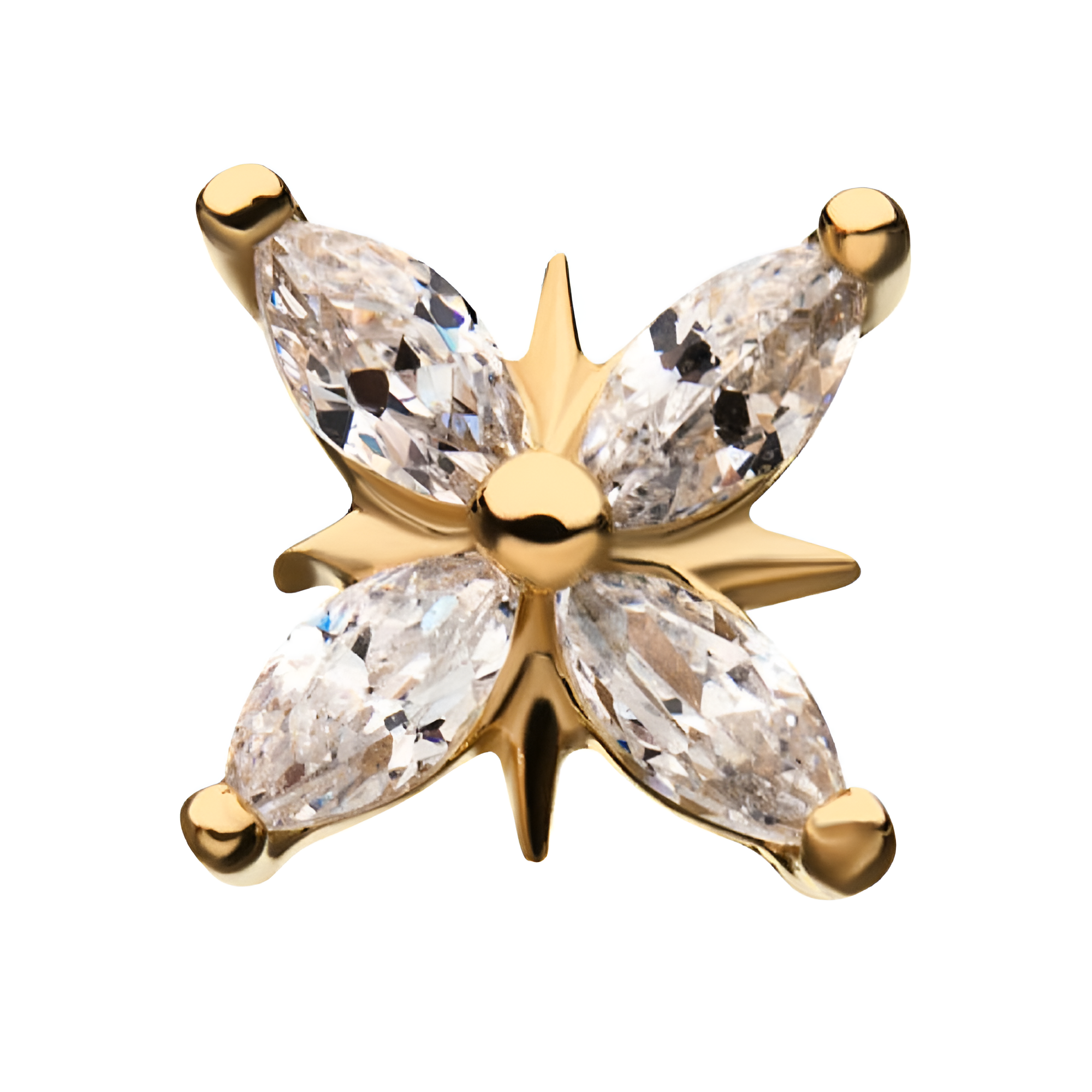 14kt Yellow Gold Threadless Prong Set 5-Clear Gem Flower Top