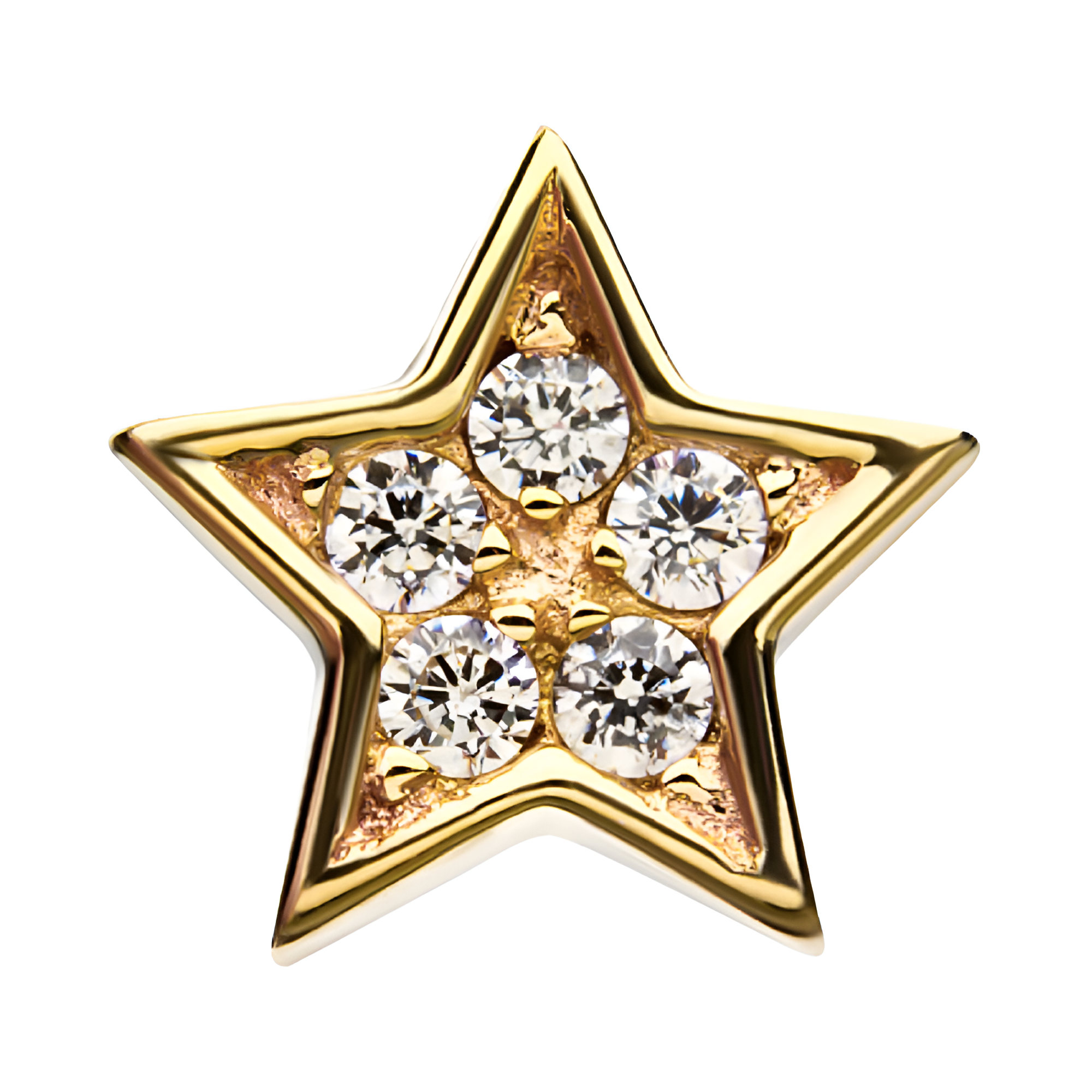 14kt Yellow Gold Threadless Multi-Clear CZ Star Shape Top