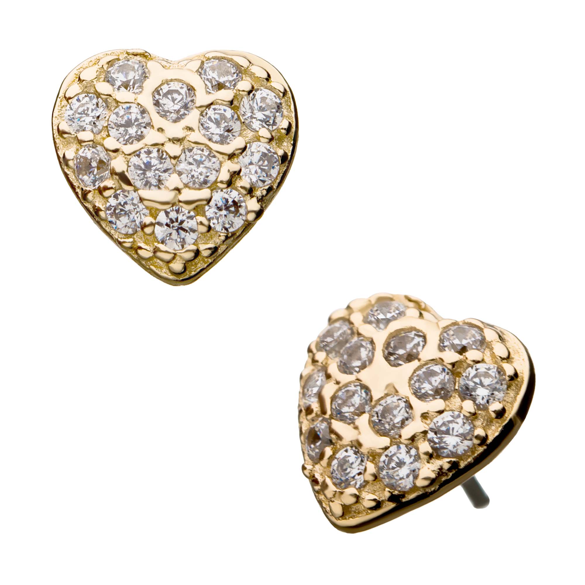 14kt Yellow Gold Threadless Multi-Clear CZ Heart Top