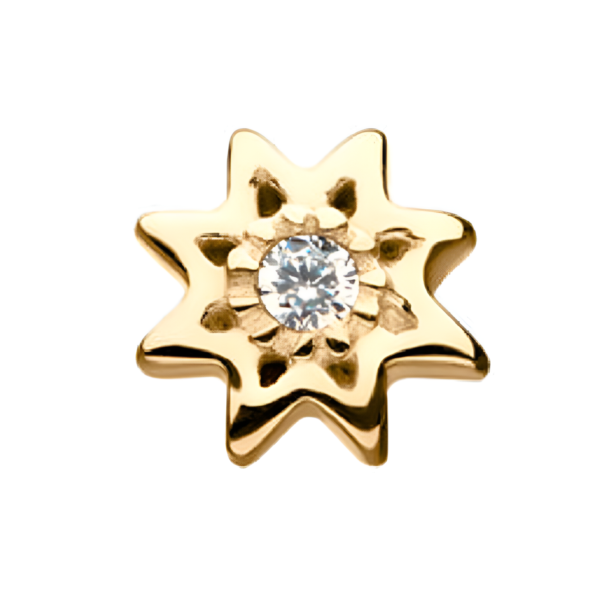 14kt Gold Threadless Multi-Clear CZ Star Top Yellow Gold