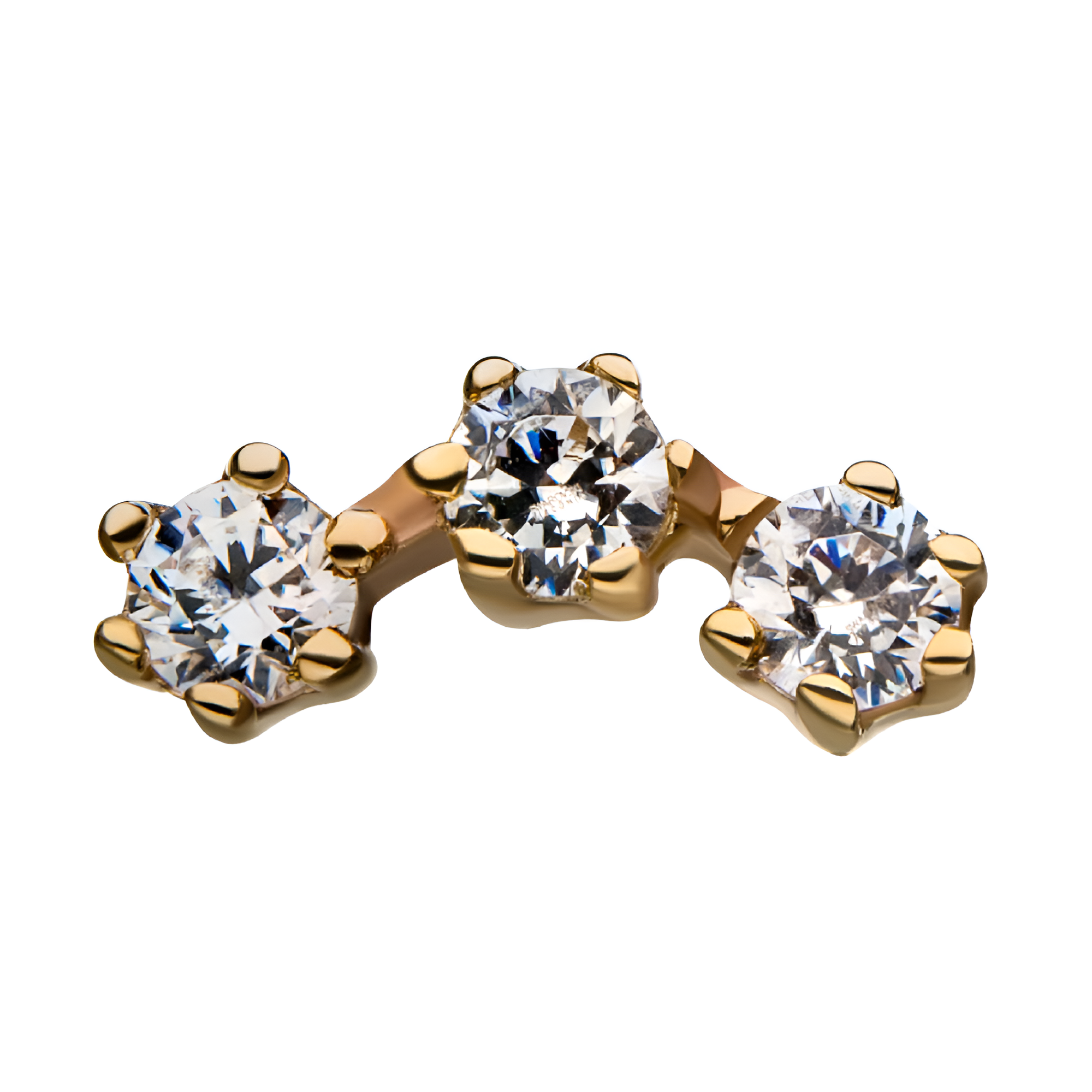14kt Gold Threadless Triple CZ Top Yellow Gold|Clear