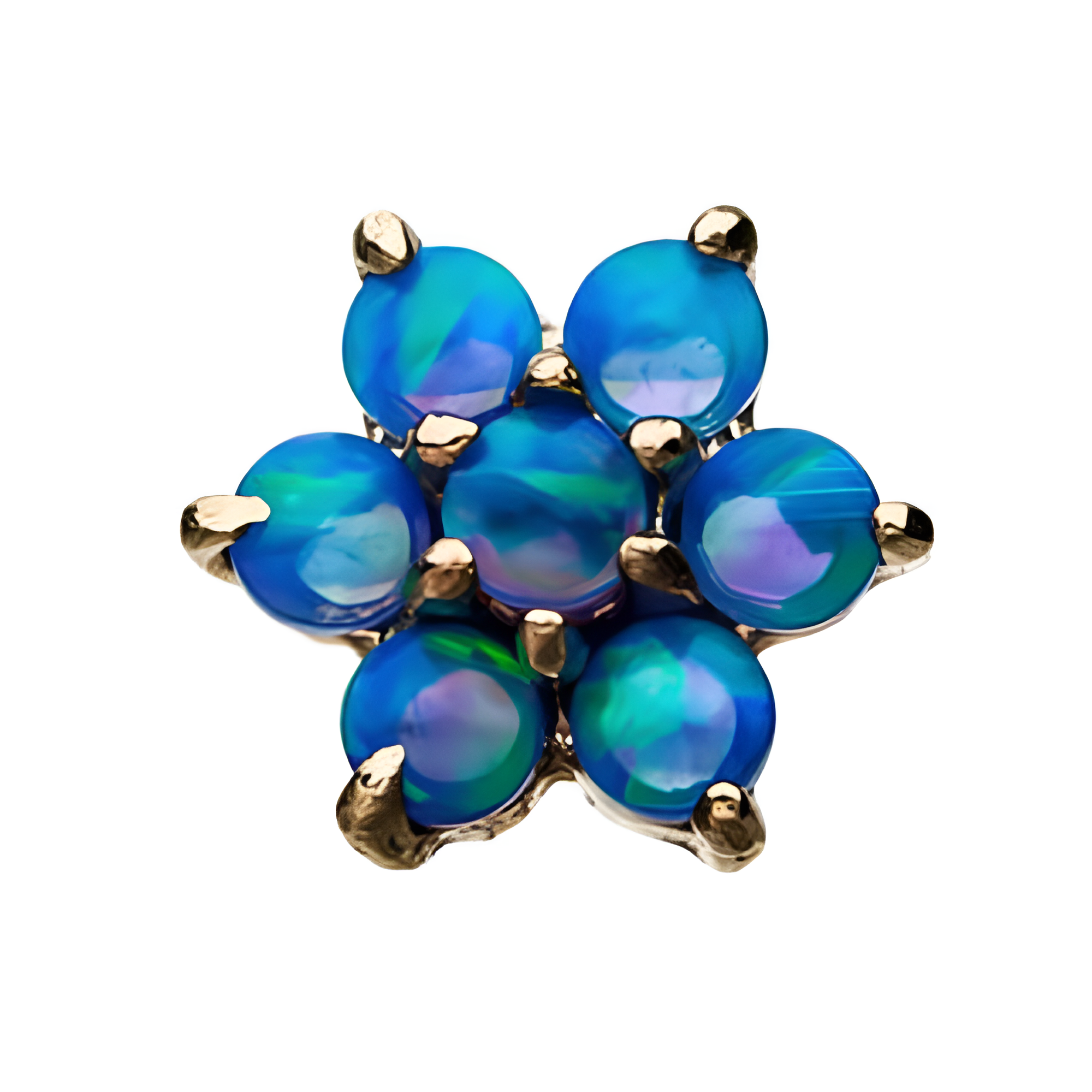 14kt Yellow Gold Threadless Clear|Blue Opal 6-CZ Clear Gems and Synthetic Opal Top