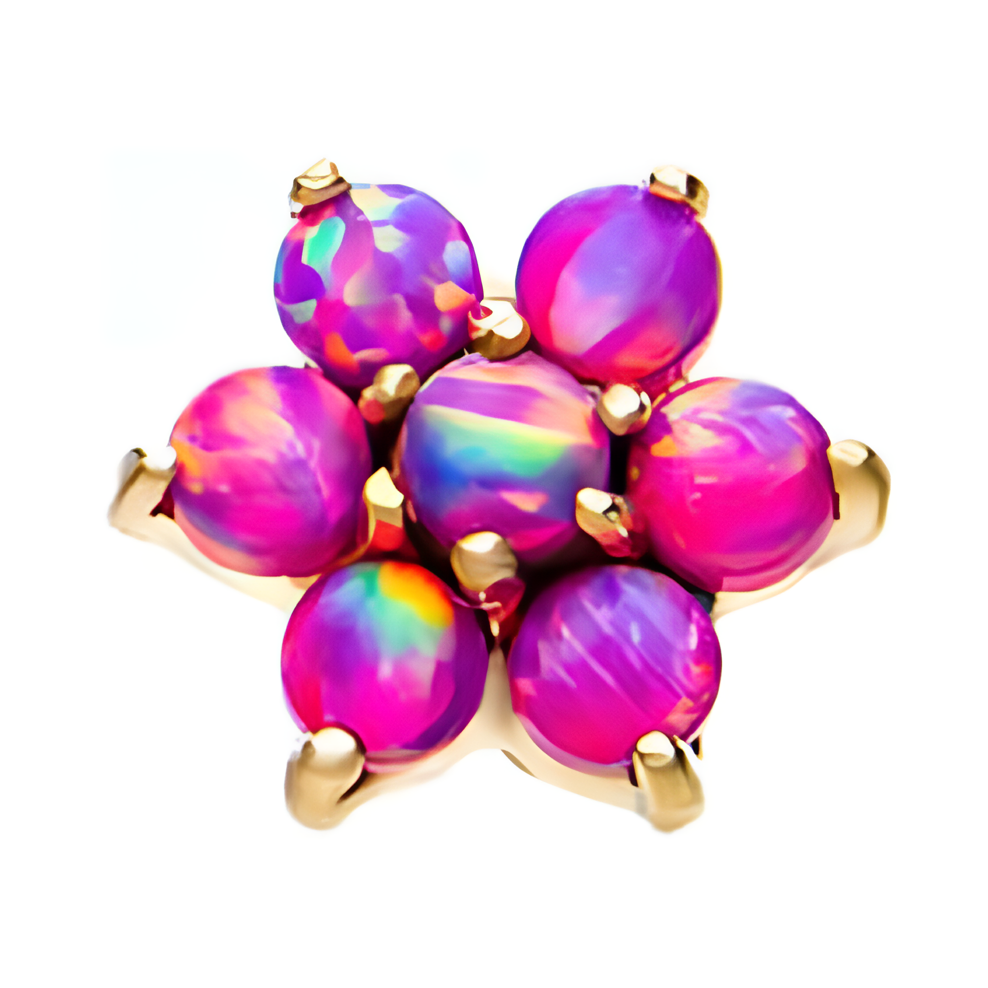 14kt Yellow Gold Threadless Clear Pink Opal 6-CZ Clear Gems and Synthetic Opal Top