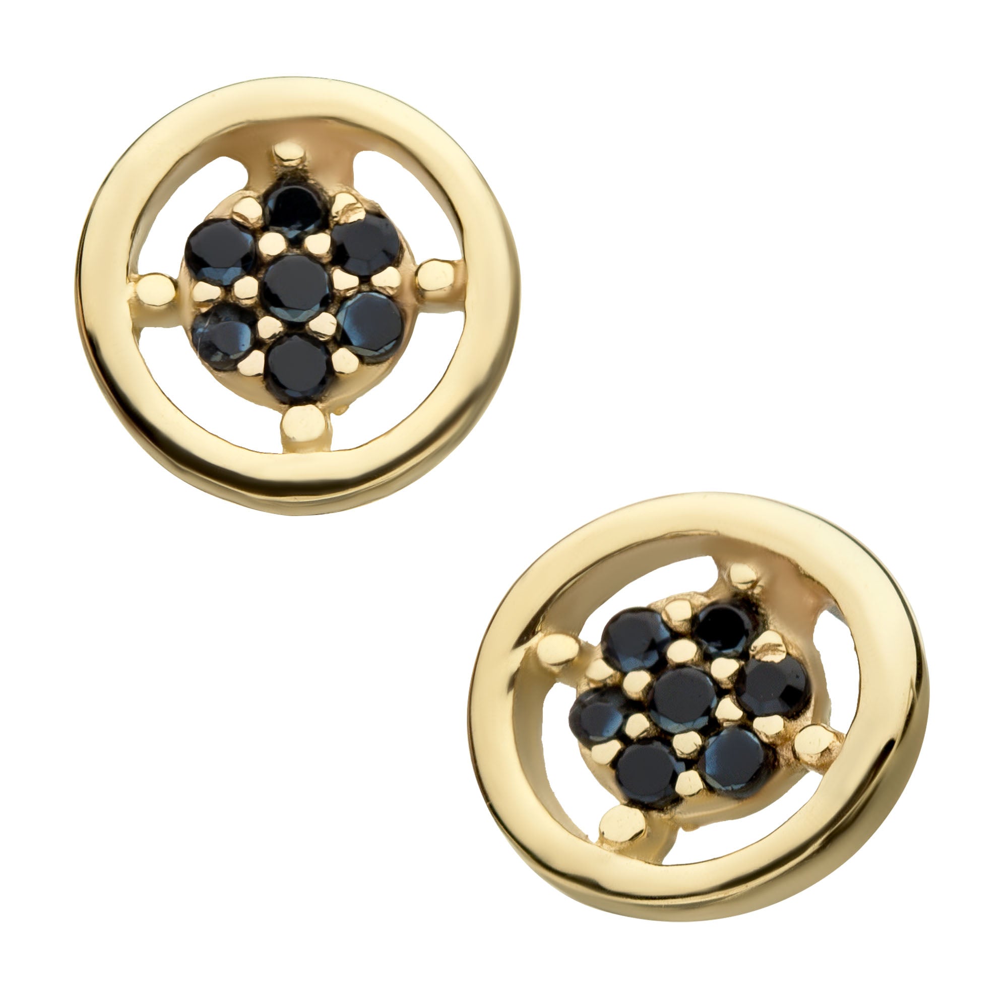 14kt Yellow Gold Threadless Halo Design 7 Suspended Black CZ's Inside Design Top