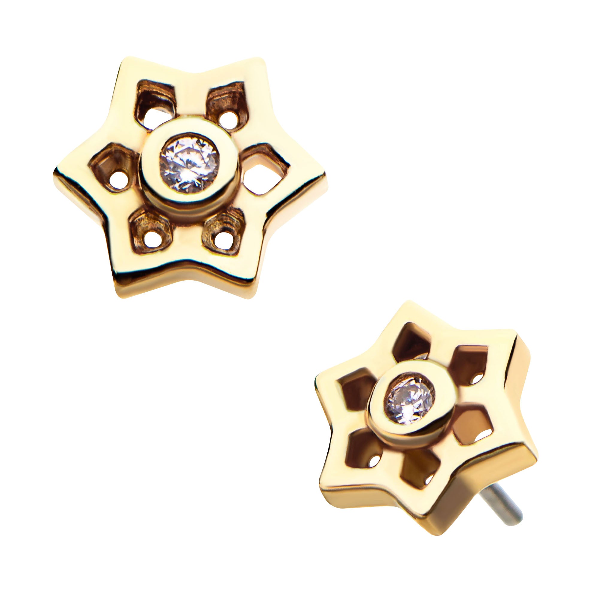 14kt Yellow Gold Threadless Holo Flower Clear CZ Top