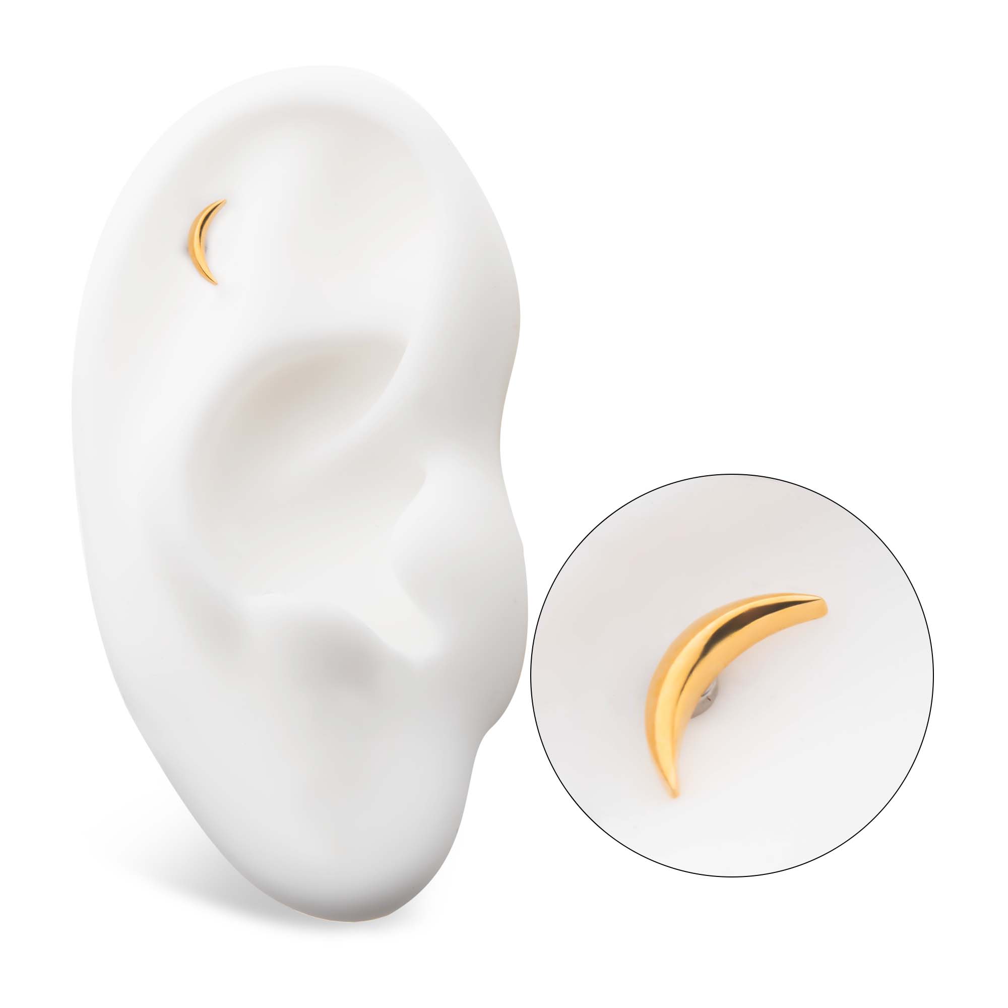 24KT Gold PVD Titanium Internally Threaded with Crescent Moon Top